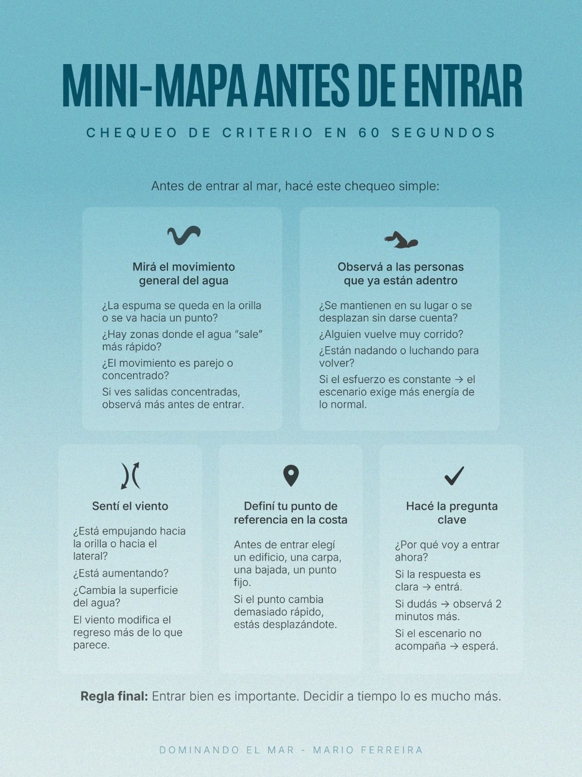 Nació en Villa Gesell y también trabajó en distintas playas de América, ampliando su mirada y su experiencia. Pero su vínculo con el mar no se construyó desde la fuerza ni el desafío, sino desde la observación.
